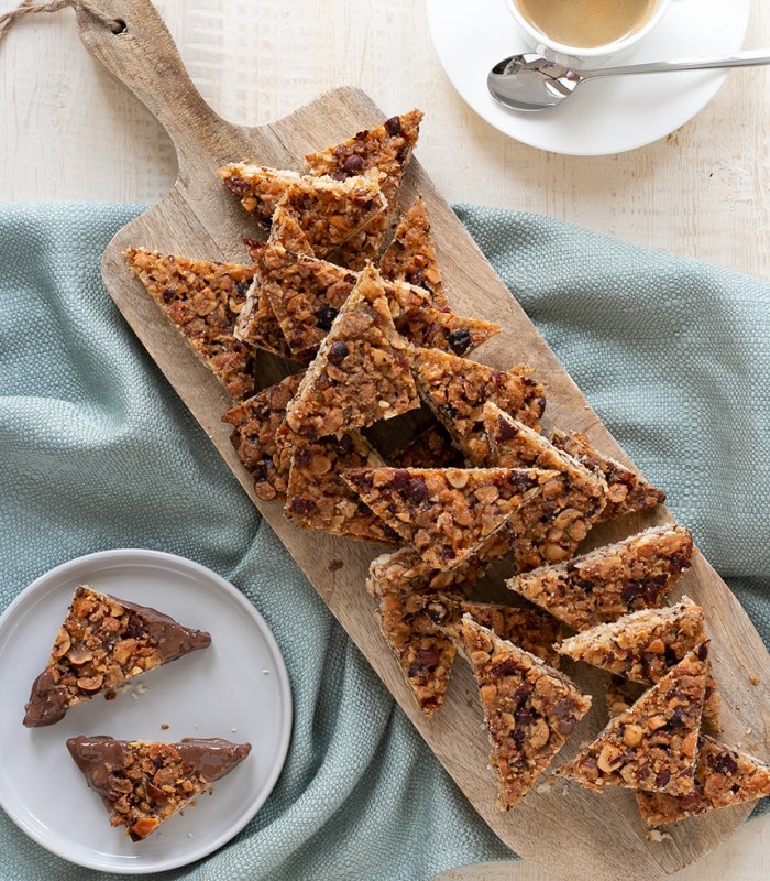 Lépés 2A cukrot, 5 ek. vizet és a vajat lassan felmelegítjük egy serpenyőben, de nem hagyjuk felforrni. A vajat és a cukrot csak megolvasztjuk. Aprított diófélékkel összekeverjük.
